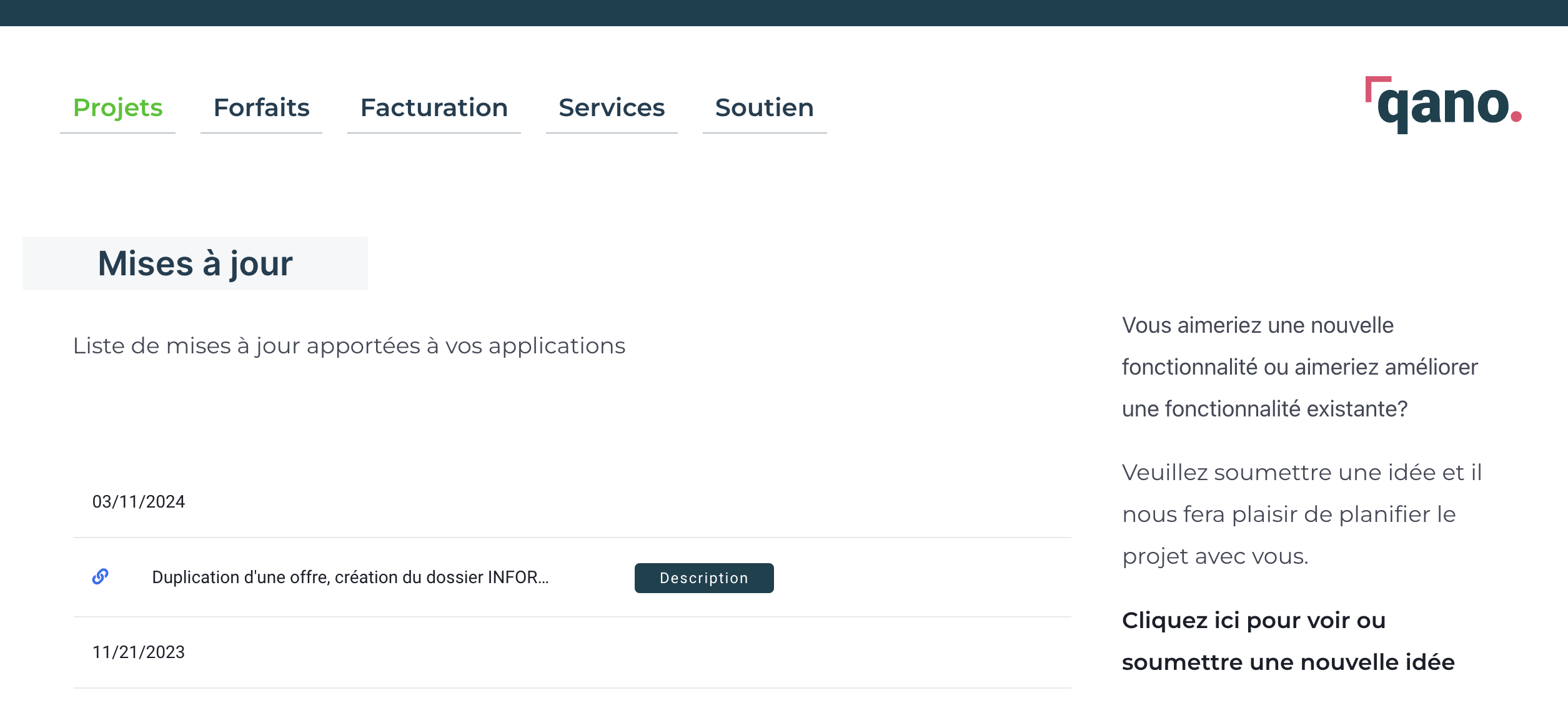 The Core Qano web platform is synchronized in real time with our internal development applications. Our developers and support staff have a lot of information.