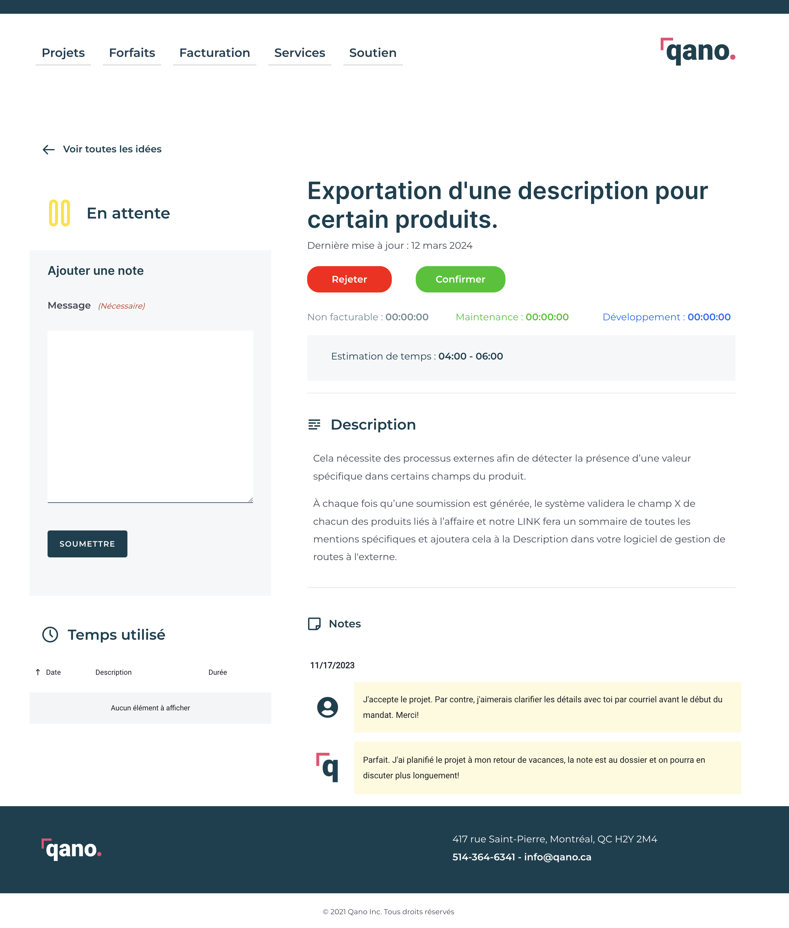 We have designed an ingenious way of working with our clients. An idea is then created in our development software, or by you on our Core Qano, this allows us to collaborate on the subject by adding notes, everything becomes very clear and above all, nothing is forgotten during development. If the idea is not included in the project, a time estimate will be provided and the client must approve it to take the idea into action.